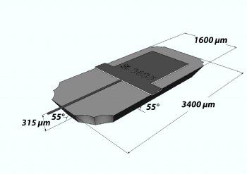 3400µm (L) x 1600µm (W) x 315µm (T) | |