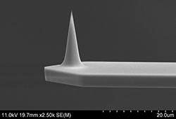 AFM针尖的几何形状在表面成像中起着重要的作用。使用统一的,锥形尖端,确保您获得真正对称的图像。当成像膜(孔)和柱结构,或表面粗糙的随机结构时,圆锥形状特别有益。Aspire™AFM探针是第一款面向大众市场的锥形AFM探针。这些探针由高质量、高掺杂的单晶硅制造,坚固耐用,并提供长成像寿命。